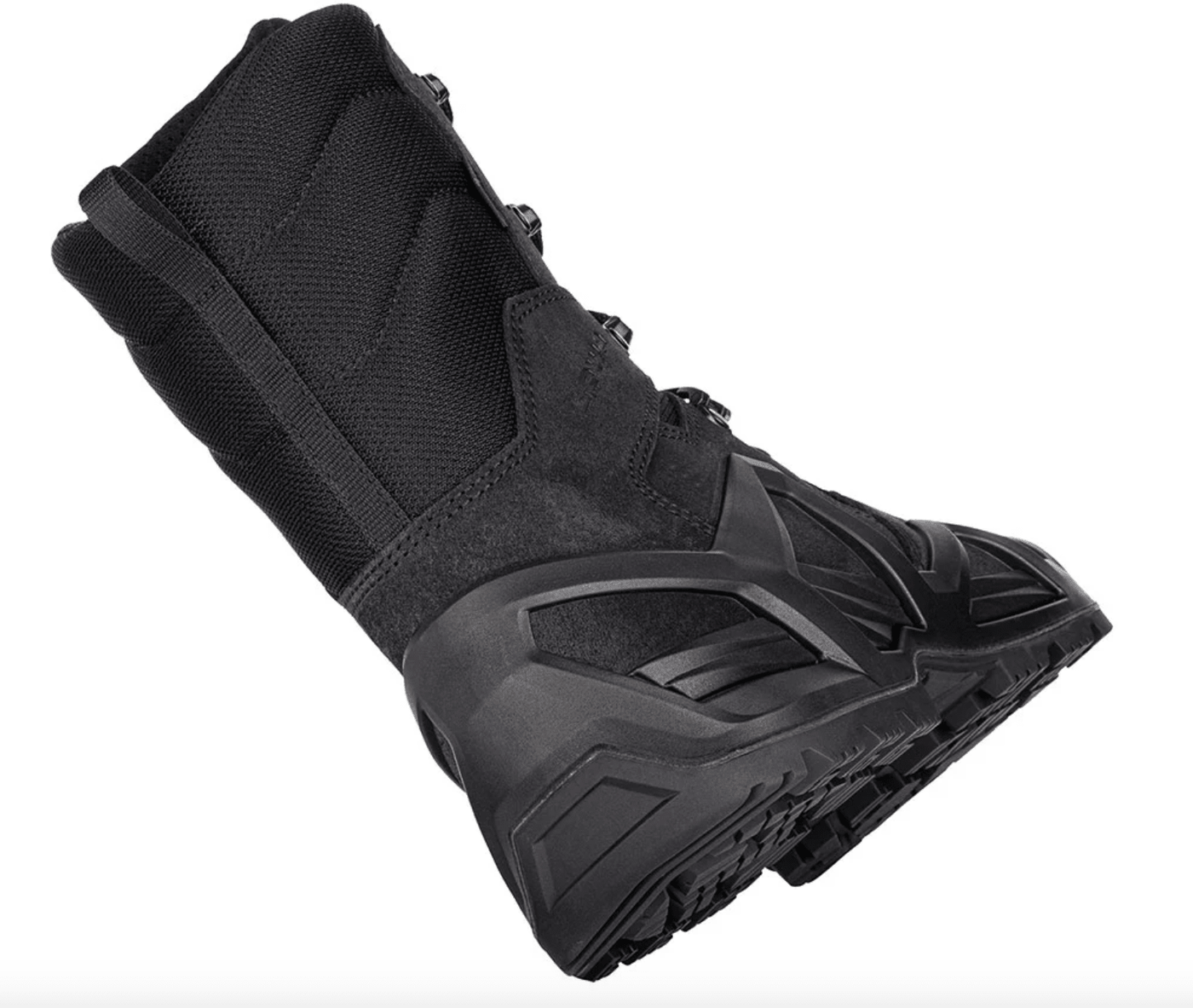 En cuanto a la suela, se trata de la LOWA X-TRAC MILITARY, que tiene cualidades antideslizantes y otorga un excelente agarre incluso en superficies mojadas o aceitosas. Cabe destacar que va unida a la parte superior gracias a un proceso de doble inyección; proporcionando un mayor confort. Asimismo, su construcción única cuenta con una zona reforzada resistente a la abrasión, pensada para minimizar el desgaste producido al hacer Fast Rope. Adicionalmente, cuenta con un relieve en la puntera que incrementa la tracción.